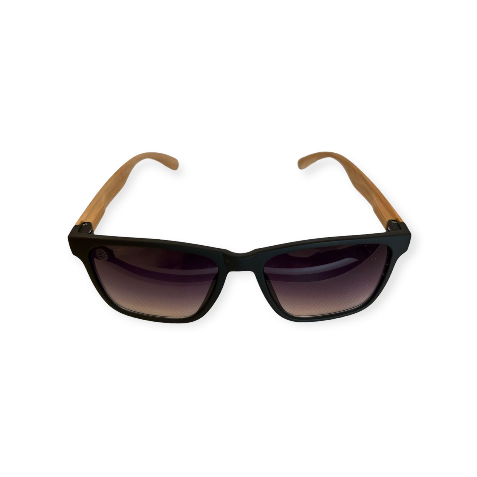 O Óculos de Sol Brava Preto Degradê Madeira Clara possui design moderno, em formato quadrado, possui a parte frontal em acetato na cor preta, haste em acetato com estampa de madeira clara e lentes degradê na cor roxa.