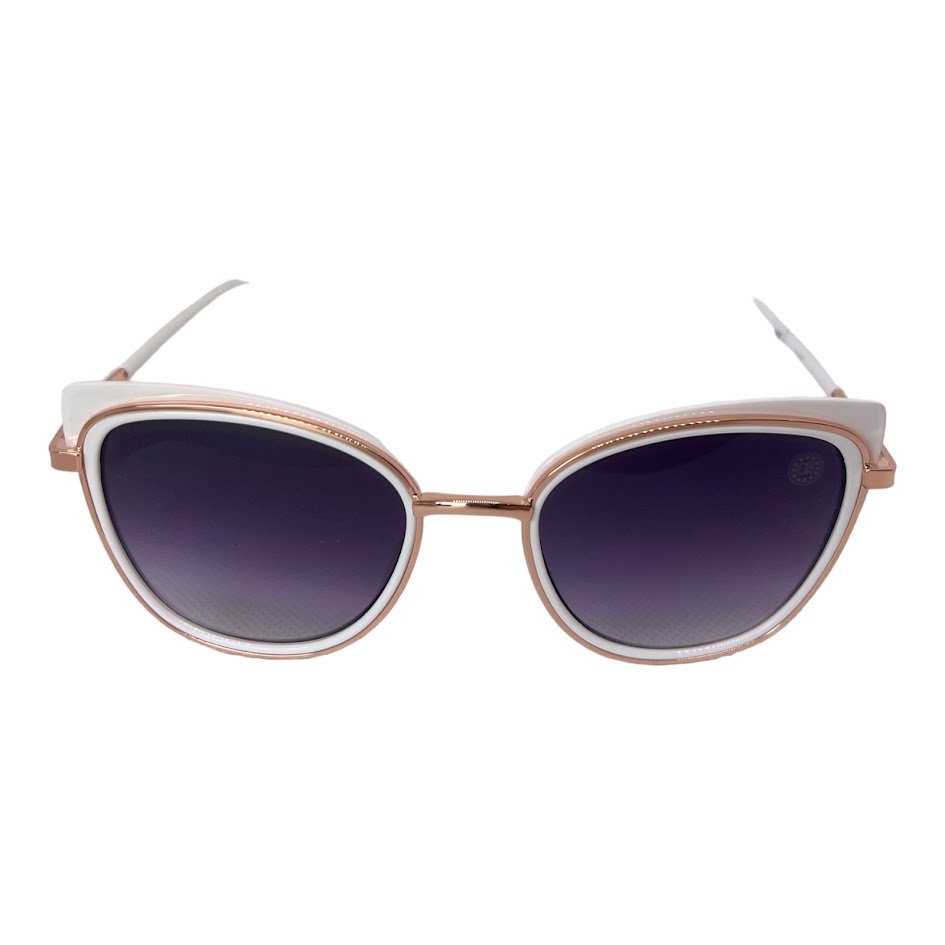O Óculos de Sol Copacabana Branco com rosê possui um design estiloso combinado branco com rosê, acabamento de acetato italiano com metal e lente degradê.