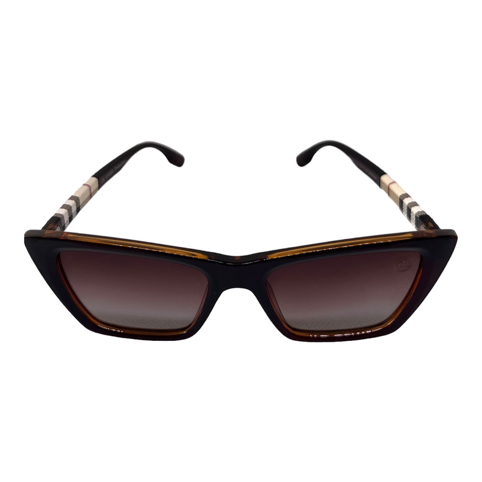 O Óculos de Sol Copacabana Marrom Xadrez Polarizado possui design vintage com acabamento nas hastes “xadrez” e lentes marron degradê.