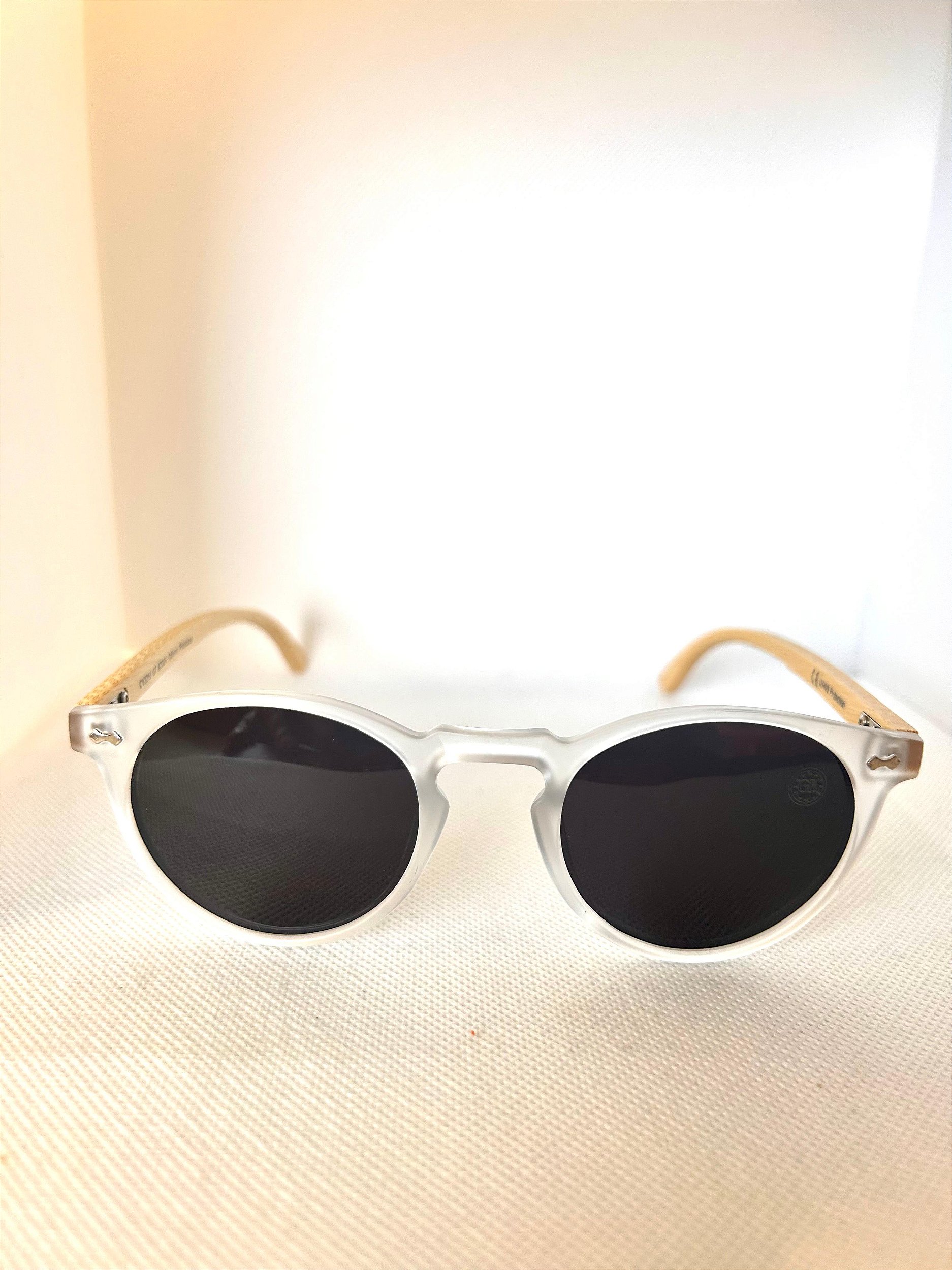 O Óculos de Sol Açores Cristal Fosco Amadeirado Polarizado possui um design moderno, em formato redondo com lindo acabamento, hastes amadeirado. Confeccionado em acetato italiano. Lente na cor preta.