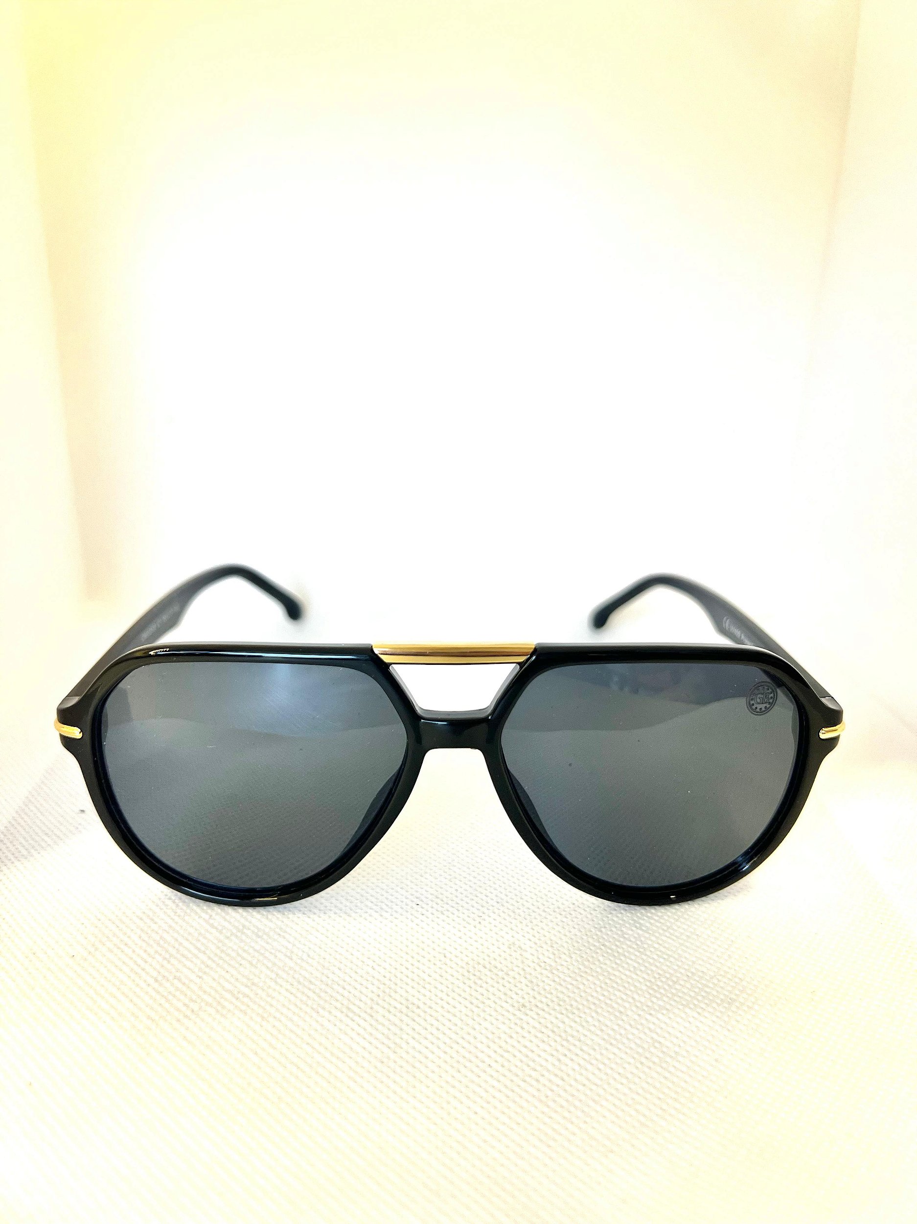 O Óculos de Sol Arvoredo Preto apresenta um design aviador clássico, acetato italiano na cor preta. Este modelo é enriquecido com detalhe em metal com banho dourado na parte frontal, conferindo um toque de elegância. As lentes na cor preta.