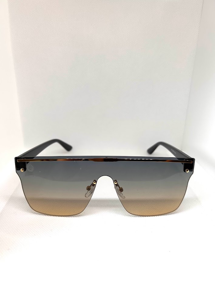 O Óculos de Sol Balneário Camboriú Mascara Acqua possui formato quadrado, hastes em acetato na cor preta acabamento brilhante. Lentes acqua borda infinita com detalhe de metal banho dourado na parte frontal.