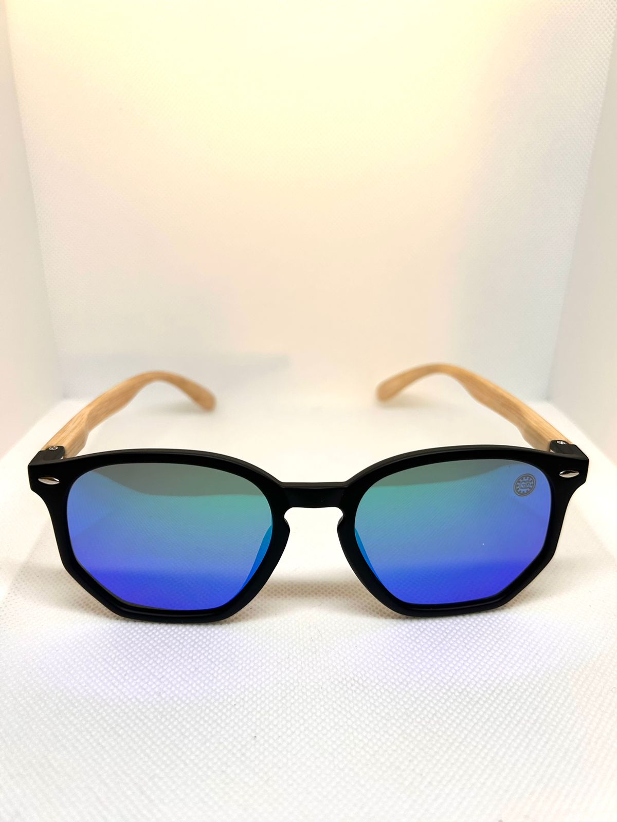 O Óculos de Sol Brava Preto Fosco Espelhado Madeira possui sua parte frontar em acetato preto com acabamento fosco e com haste de madeira escura. Lentes polarizadas espelhadas camaleão.