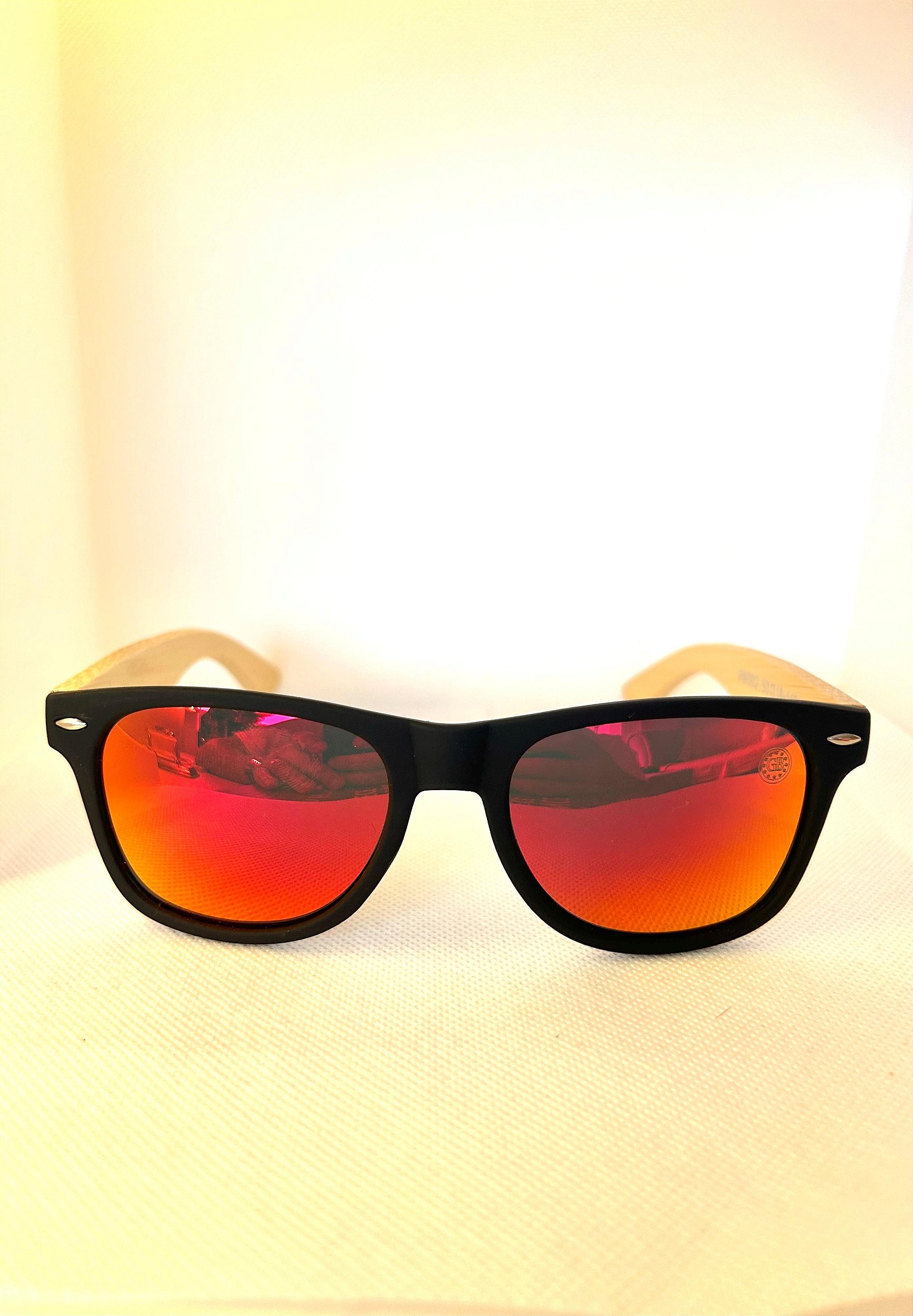 O Óculos de Sol Brava Vermelho Amadeirado Polarizado possui design urbano em formato quadrado, toda armação em acetato na cor preta acabamento fosco, e lente polarizada na cor vermelho espelhado.