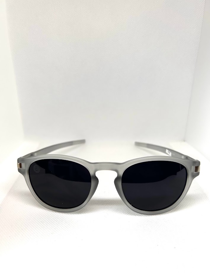 O Óculos de Sol Floripa Cristal Cinza Fosco possui design redondo, armação em acetato cristal cinza fosco, detalhe de metal nas hastes e lente preta.