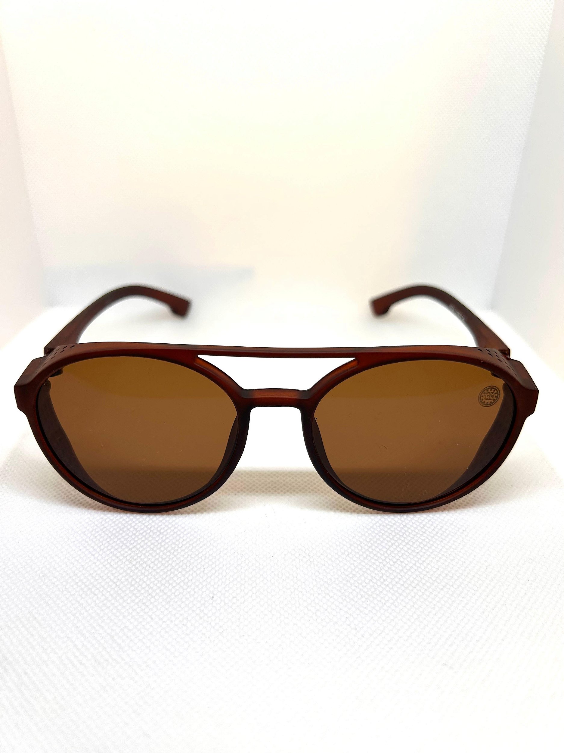 O Óculos de Sol Santinho Marrom Redondo possui design moderno, em formato redondo, armação em acetato na cor marrom, com escudo na lateral e lentes na cor marrom.