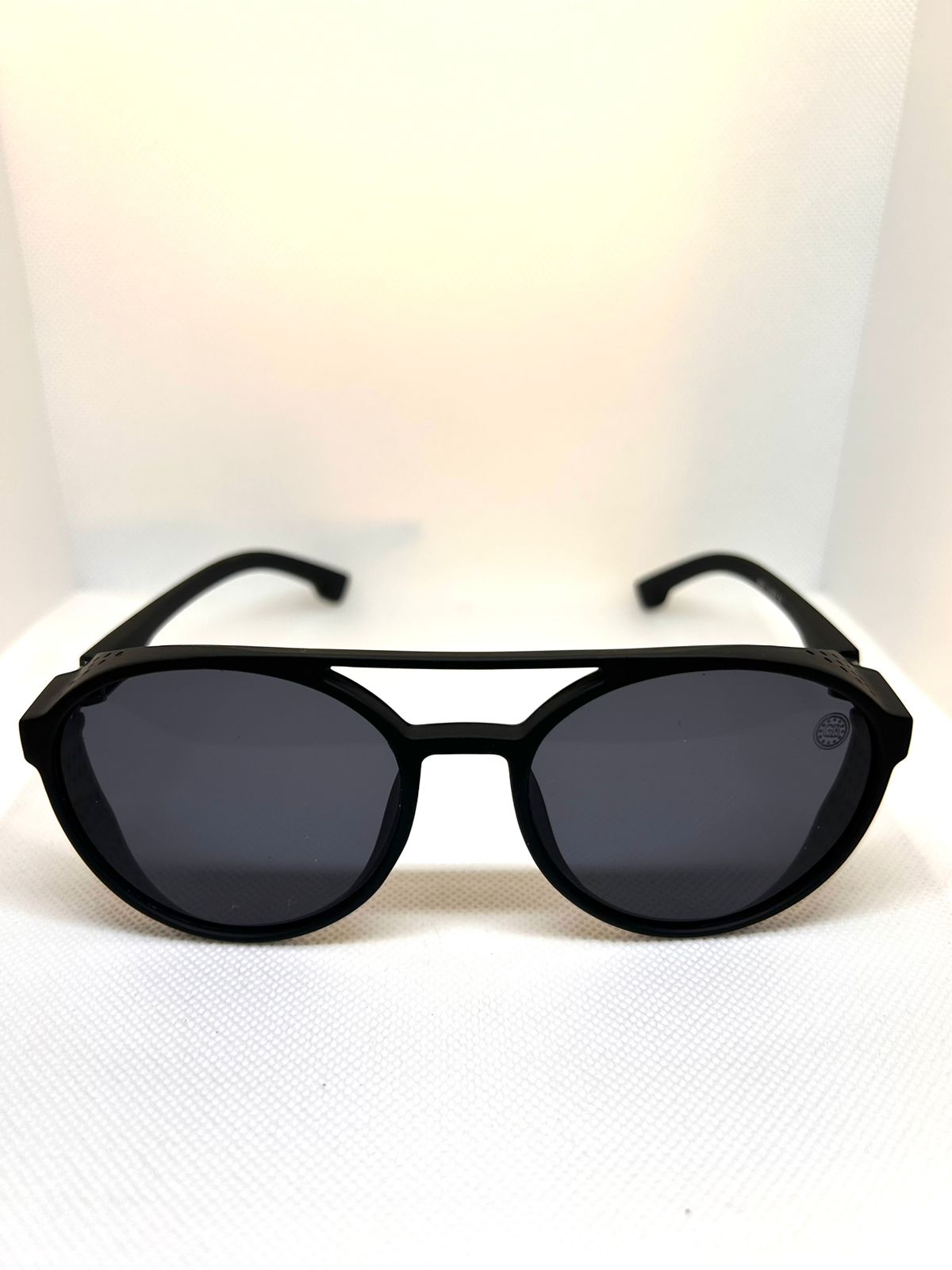 O Óculos de Sol Santinho Preto Redondo possui um design moderno, em formato redondo, armação em acetato na cor preta fosco, com escudo na lateral e lentes na cor preta.